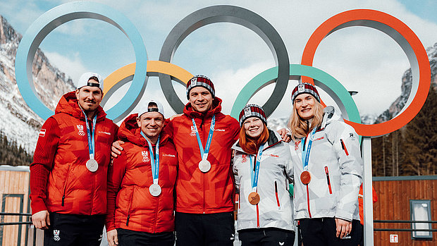Rodel Austria jubelt im Cortina Sliding Center über zwei weitere Olympiamedaillen. Thomas Steu und Wolfgang Kindl gewinnen bei den Herren die Silbermedaille, Se…