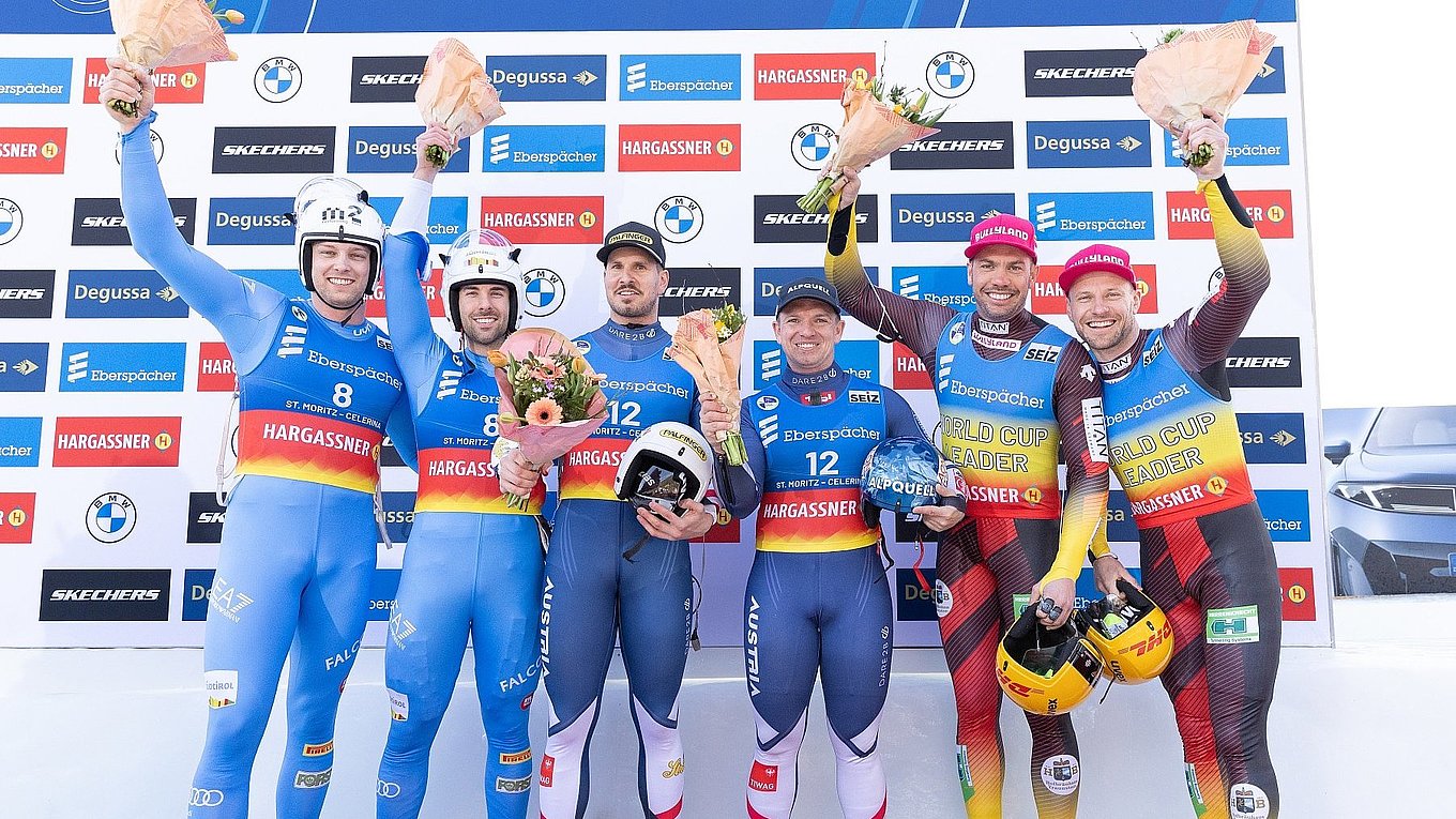 Bei den Herren feierten Thomas Steu und Wolfgang Kindl im Schweizer Engadin ihren ersten Saisonsieg und fünften gemeinsamen Erfolg im Doppelsitzer-Weltcup. Die zweifachen Silbermedaillen-Gewinner von Cortina hatten nach einem engen Rennen mit einem Vorsprung von vier Tausendstel auf die Italiener Ivan Nagler/Fabian Malleier neben Können auch das nötige Glück auf ihrer Seite. Mit einer Enttäuschung endete der Arbeitstag hingegen für die restlichen ÖRV-Duos. Die Halbzeitführenden Juri Gatt und Riccardo Schöpf kostete ein Fehler in Durchgang zwei den möglichen Sieg, die Weltmeister von 2024 fielen auf Rang vier zurück. Auch Yannick Müller und Armin Frauscher, die nach der drittschnellsten Zeit in Durchgang eins aufgrund einer Überschreitung des Gesamtgewichts disqualifiziert wurden, stand die Enttäuschung ins Gesicht geschrieben. Die Deutschen Tobias Wendl und Tobias Alt, heute auf Rang drei, stehen vorzeitig als Gesamtweltcup-Sieger fest. Juri Gatt und Riccardo Schöpf verteidigten ihre zweite Position, Thomas Steu und Wolfgang Kindl verbesserten sich auf Rang drei.