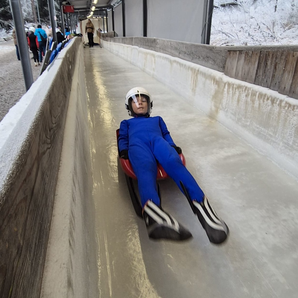 • Rodelstarts auf vereister Startanlage